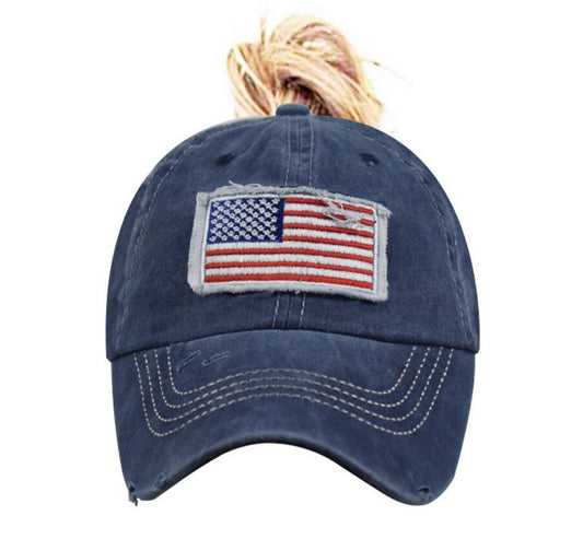 American Flag Trucker Ponytail Hat, USA,