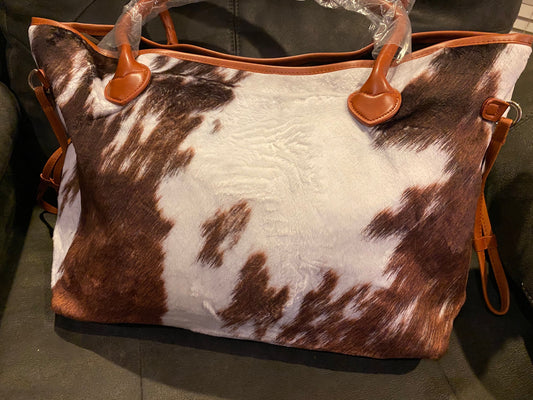 Cow Print Tote, Wristlet Set, Purse, Travel Bag, Gift, Personalized, Embroidered